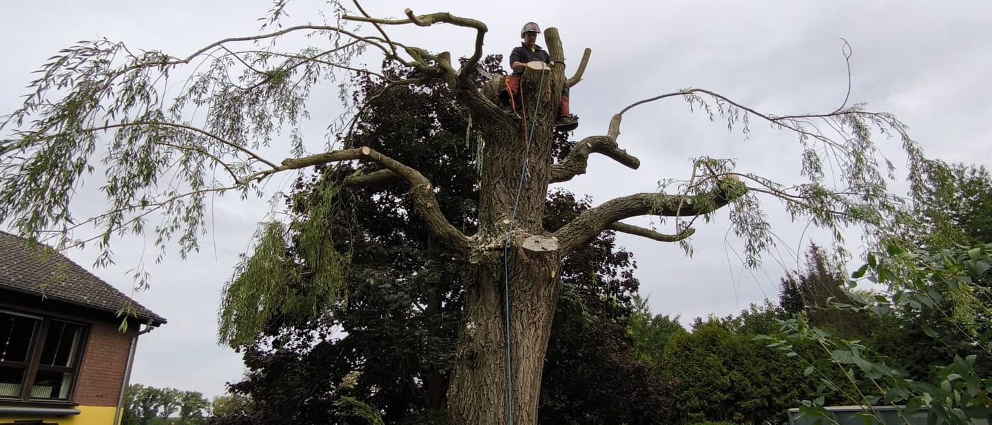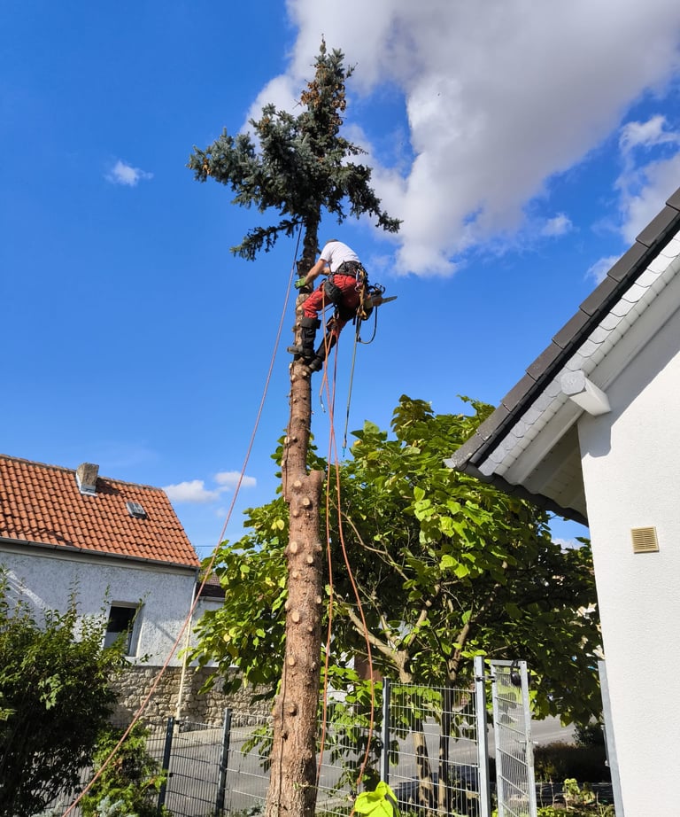 Mit über 11 Jahren Erfahrung in der Seilklettertechnik (SKT) sind wir auf schwierige und beengte Baumfällungen in Bad Kreuznach und Umgebung spezialisiert. Diese Methode ermöglicht eine stückweise, kontrollierte Fällung, auch an schwer zugänglichen Standorten – effizient, sicher und ohne schwere Maschinen.