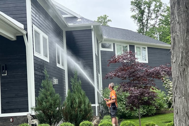 Von der Dachreinigung über die Fassaden- und Steinreinigung bis hin zur Pflege von Vorgarten und Bäumen – wir sorgen für einen überzeugenden ersten Eindruck.